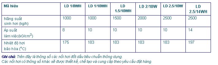 Đặc tính kỹ thuật lò hơi đốt dầu hộp khói ướt (ống lò lệch tâm):