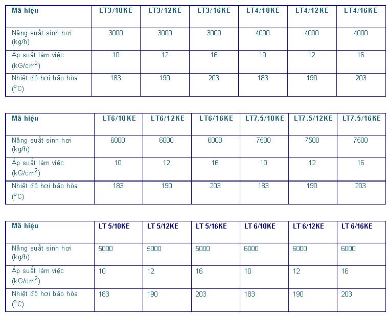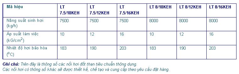 Đặc tính kỹ thuật lò hơi đốt than ống nước dạng KE: